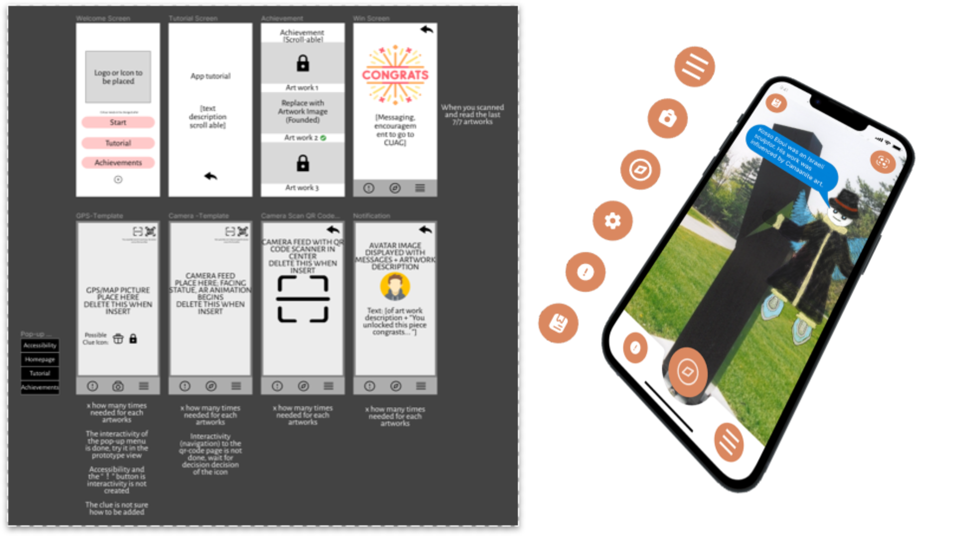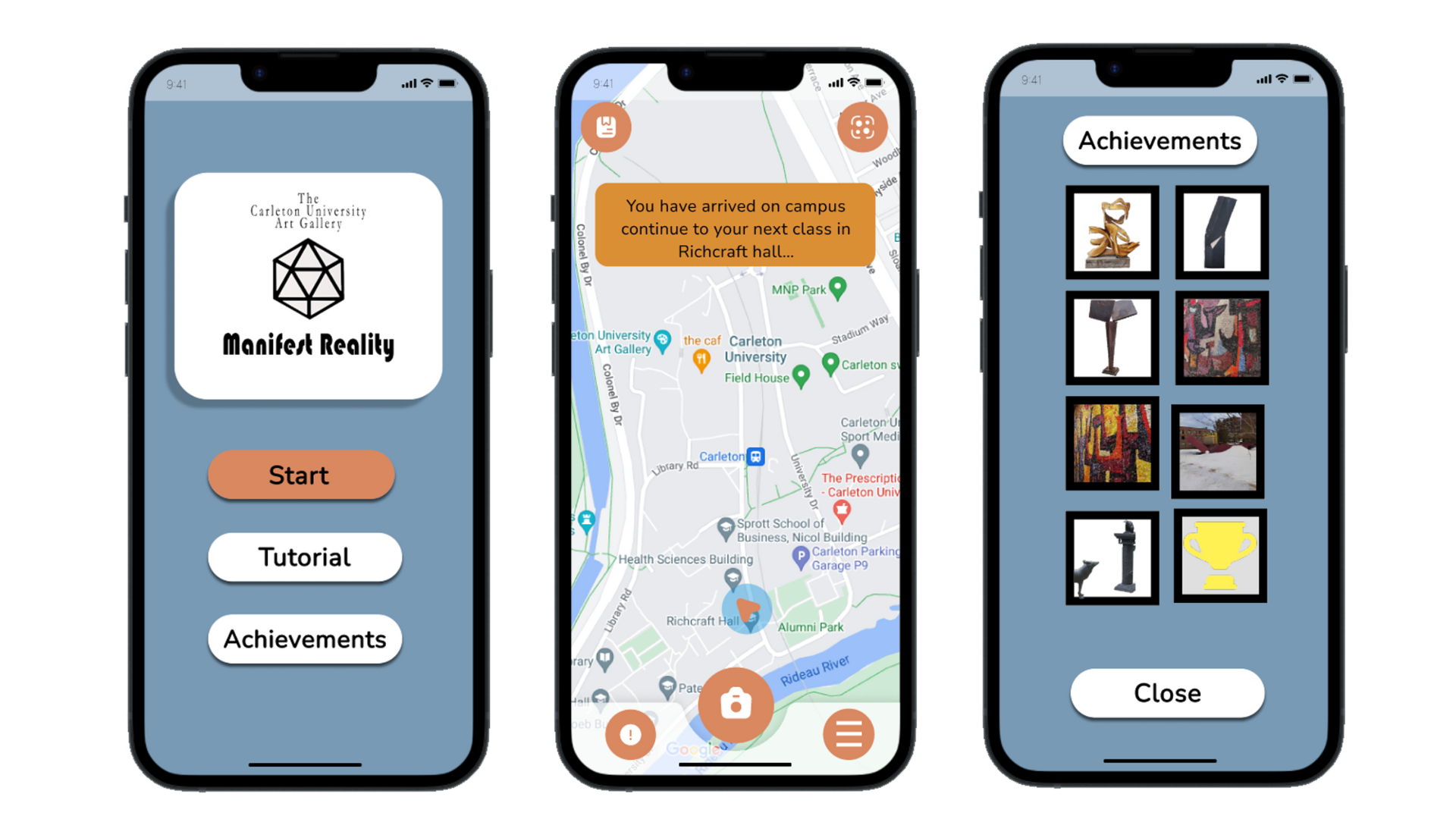 In addition to the VR experience, a prototype for an AR app called CUAG’s Manifest Reality was designed to bring visitors around campus physically. While following the storyline on the app, visitors can explore the campus and artwork, ending their journey at the Carleton University Art Gallery.