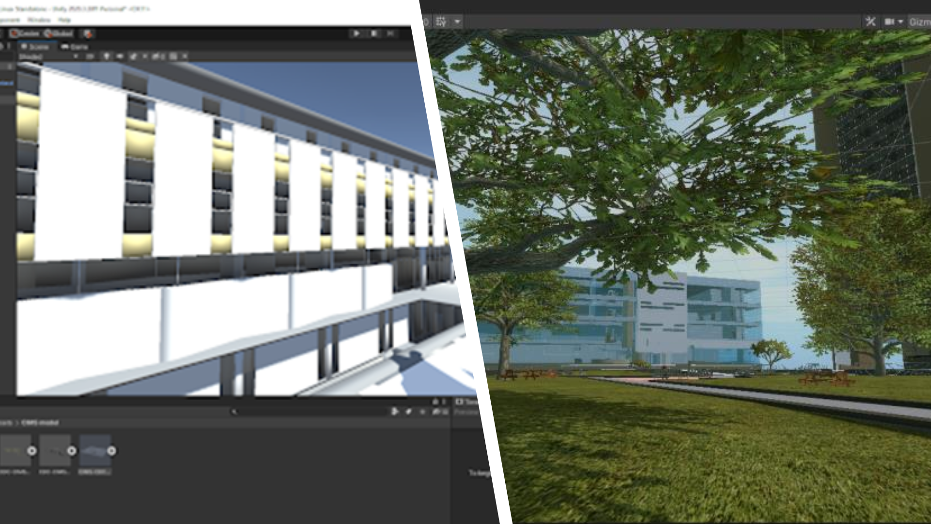 The VR experience consists of a campus model, artworks models, information panels, and other design elements. The campus model is created in Unity 3D using an FBX import of complex campus model provided by Carleton Immersive Media Studio (CIMS). Environmental elements, textures, and sounds are added to the experience.