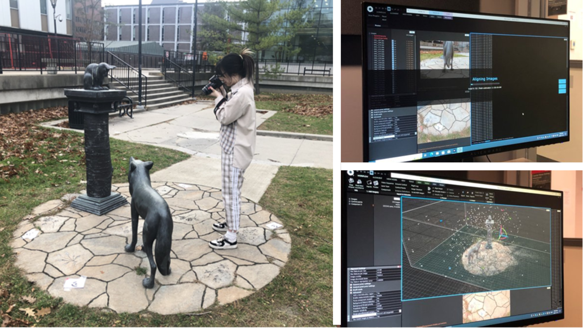 Artwork models were created using photogrammetry, a process that involves taking multiple photographs of the same object or area from different angles and using specialized software, Reality Capture, to stitch them together, to create an accurate 3D model. Photogrammetry provided a method for including accurately modelled and highly detailed artwork.
